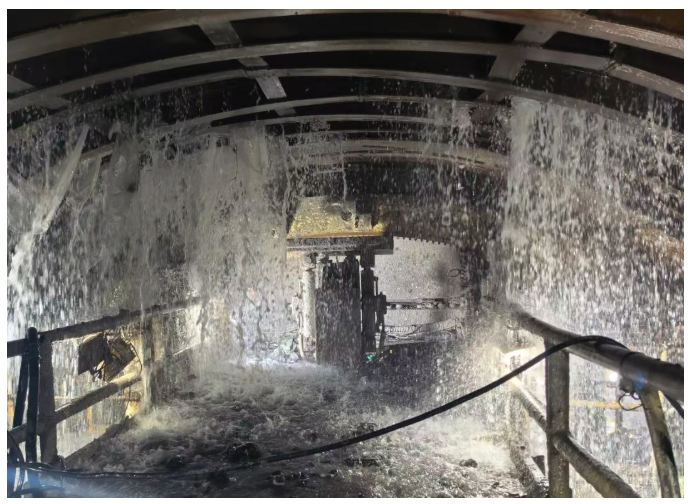 2024年末“彩云号”恢复掘进后,前方再次出现的蚀变带,以及随后的富水构造破碎带地层成为阻拦项目团队的新挑战。相较于蚀变带,富水构造破碎带施工风险相对较低,但分布面积更广,施工时作业面最大涌水量可达到每小时500立方米,水流常携带大量泥石,严重阻碍施工进度。
